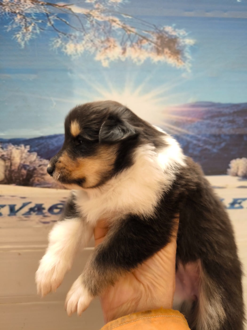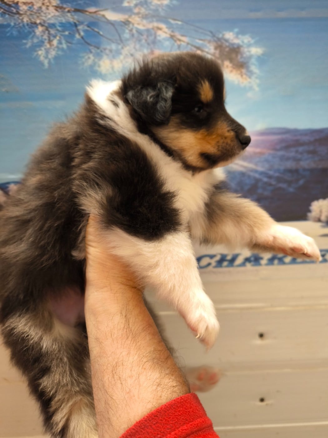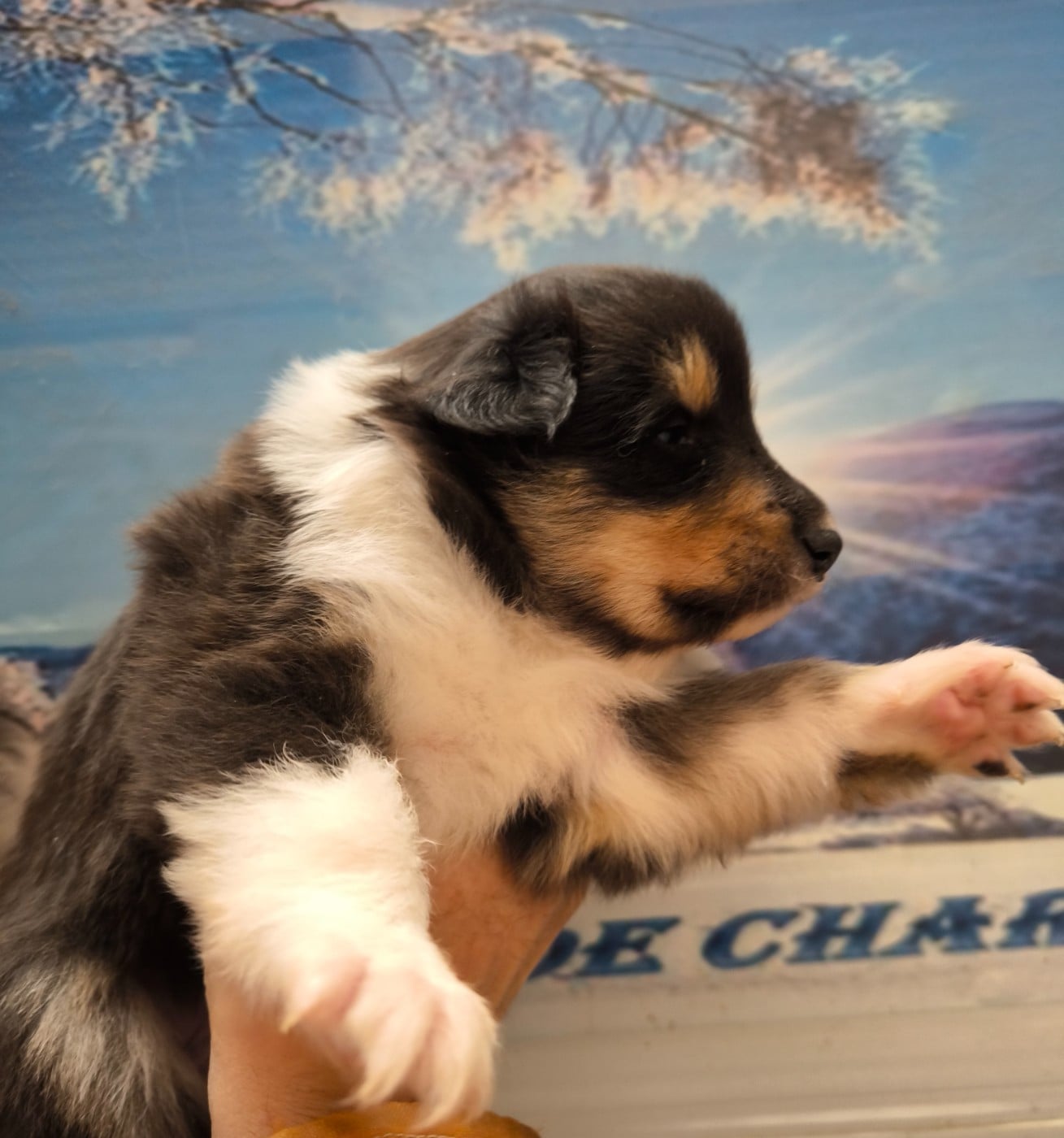 Très belle femelle tricolore avec le collier entier blanc. Livraison possible dans toute la France ( par mes soins) sous certaines conditions.